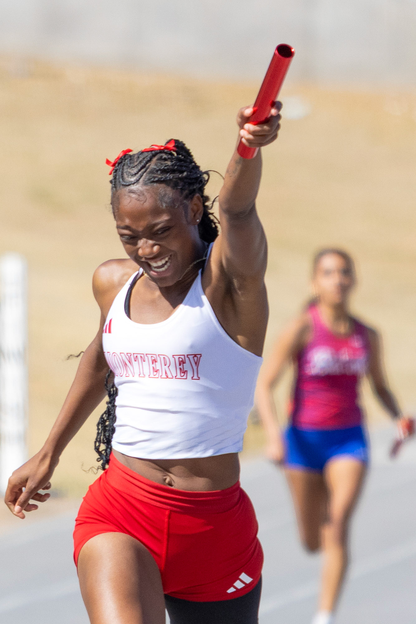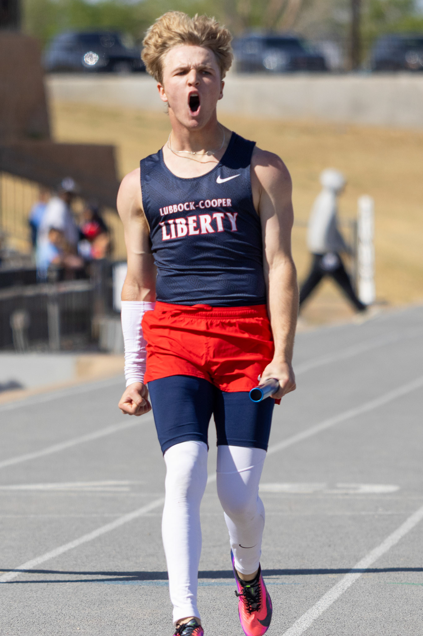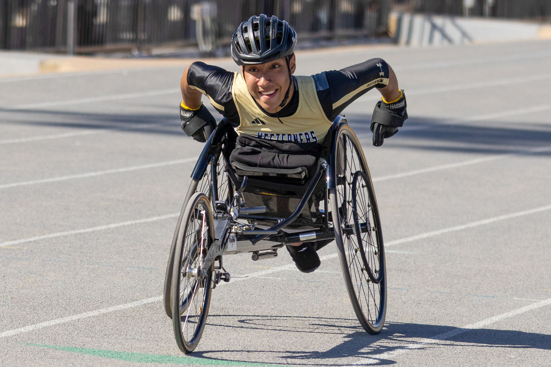 Amarachi Ekeke smiles after spiking the ball to win a point during a pickleball game, Thursday, Feb. 12, 2026, at the Urbanovsky Park pickleball courts in Lubbock, Texas. Ekeke participated in a Texas Tech University pickleball class at the park.